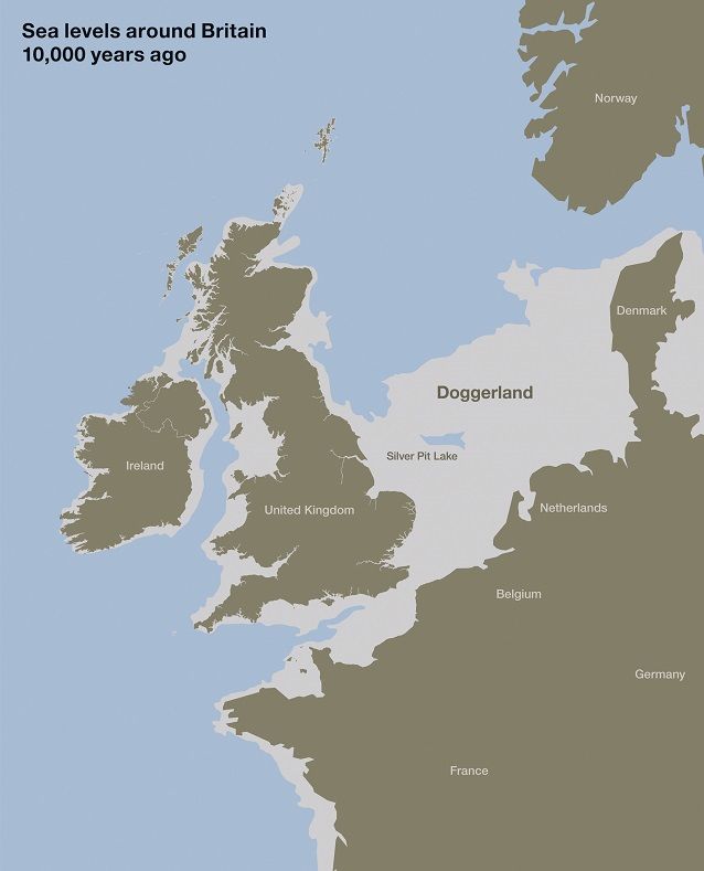 Há cerca de 11.600 anos, a temperatura começou a subir muito rapidamente e o gelo que cobria a maior parte da Grã-Bretanha começou a recuar para o Ártico. Os primeiros colonos chegaram à Grã-Bretanha através de Doggerland, as terras baixas do que hoje é o Mar do Norte, provavelmente seguindo animais como renas, ou viajando em barcos ao longo da costa atlântica até as partes ocidentais da Grã-Bretanha. À medida que o clima continuava a aquecer, o nível do mar subiu e, há cerca de 8.500 anos, a Grã-Bretanha tornou-se uma ilha.