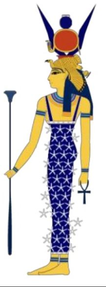 Baseada na antiga deusa egípcia do céu Nut, que se arqueia sobre seu marido/irmão, Geb (o deus da Terra). Ela geralmente é retratada como uma mulher nua coberta de estrelas.
